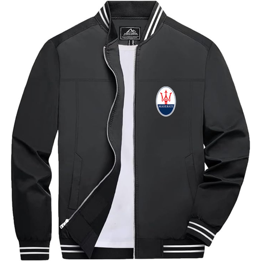 Men’s Maserati Car Lightweight Zip-Up Bomber Jacket with Ribbed Collar and Cuffs - Versatile Casual Outerwear