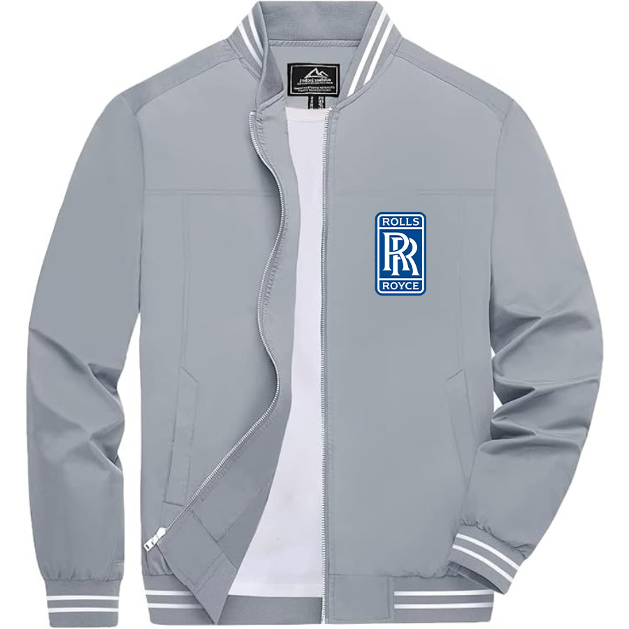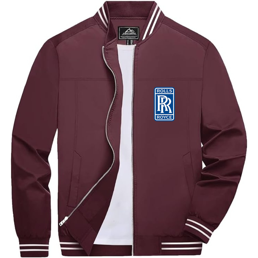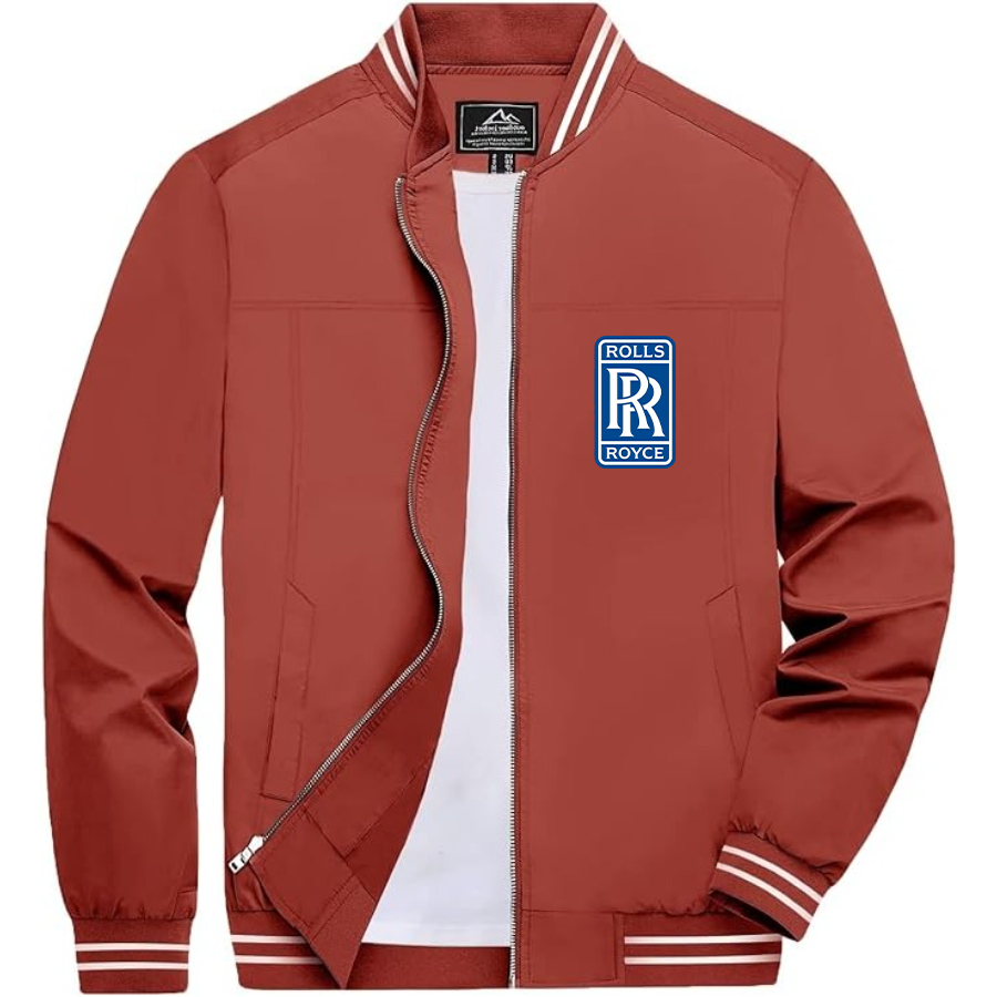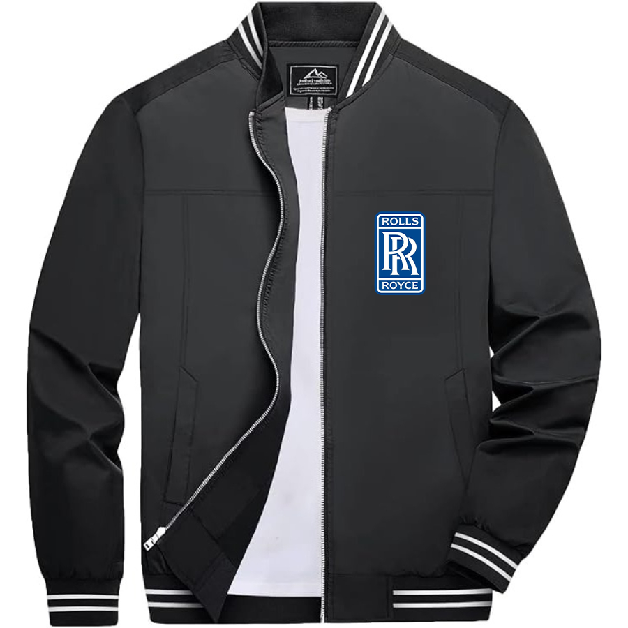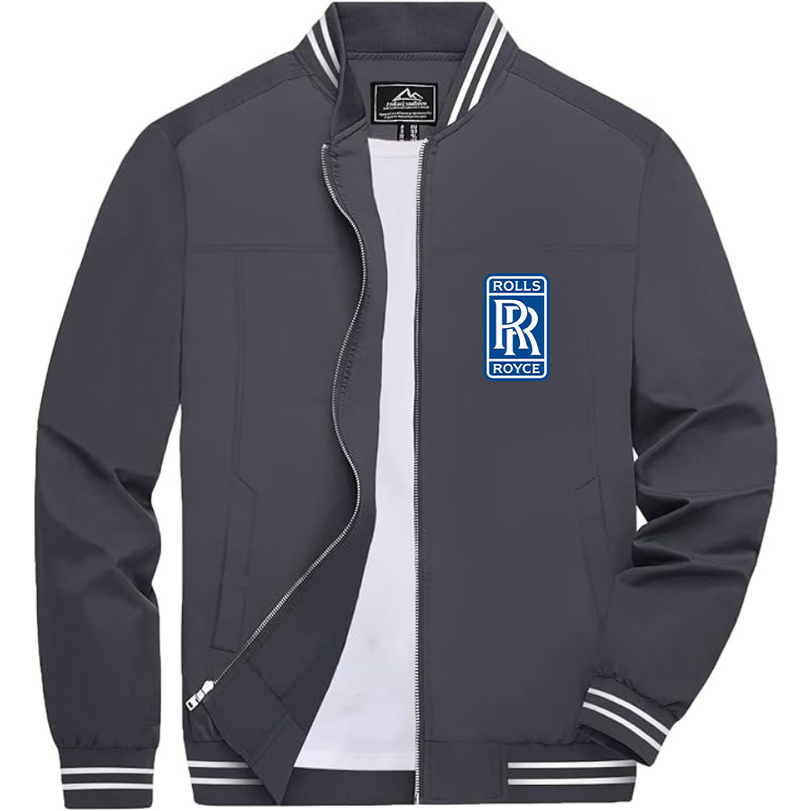 Men’s Rolls Royce Car Lightweight Zip-Up Bomber Jacket with Ribbed Collar and Cuffs - Versatile Casual Outerwear