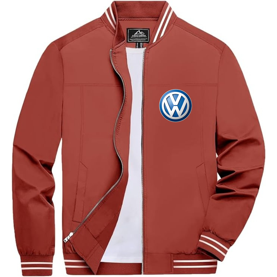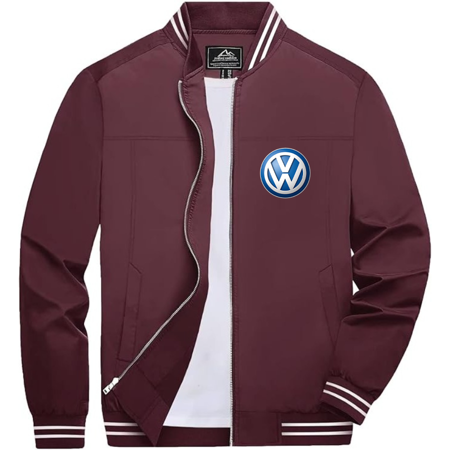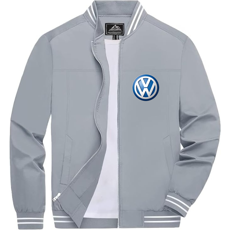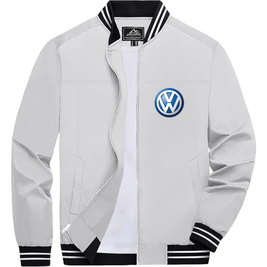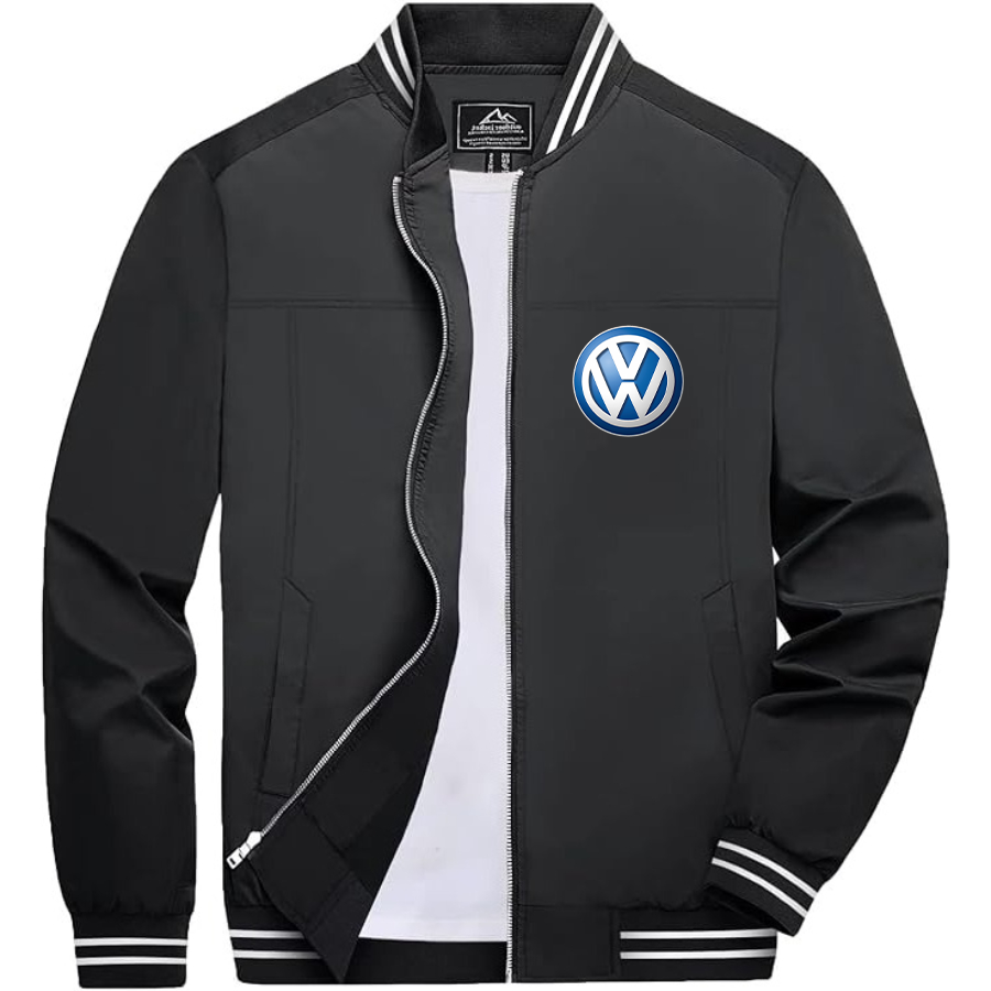 Men’s VW Volkswagen Car Lightweight Zip-Up Bomber Jacket with Ribbed Collar and Cuffs - Versatile Casual Outerwear